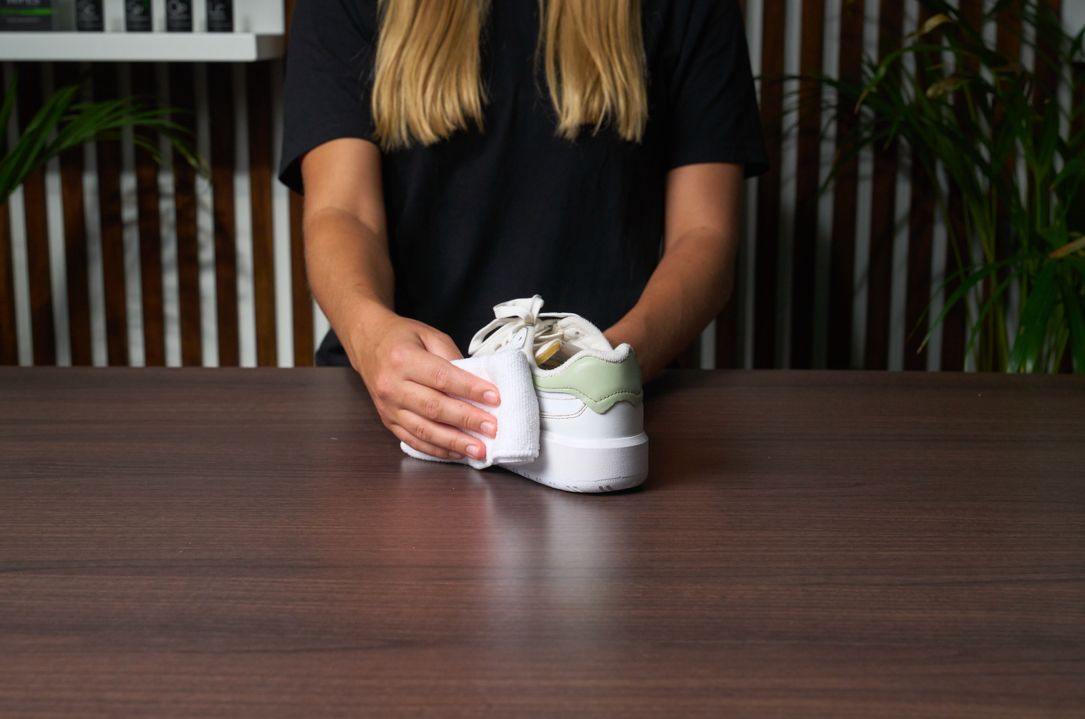 Step 3: Use our Microfiber Towel to pat away any lingering moisture and residual dirt from your Leather Classics. Allow the sneakers time to air dry naturally.