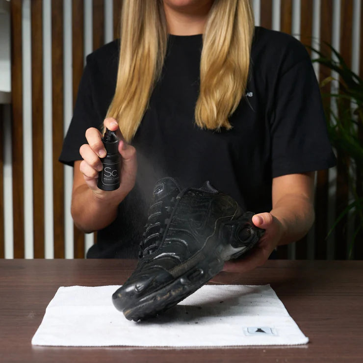 Step 7: Following that, spray our Sneaker Protector across the entirety of the sneaker's exterior to create a protective barrier against dirt and bacteria accumulation. This proactive step will streamline your next cleaning process while keeping your sneakers looking fresh for longer periods.