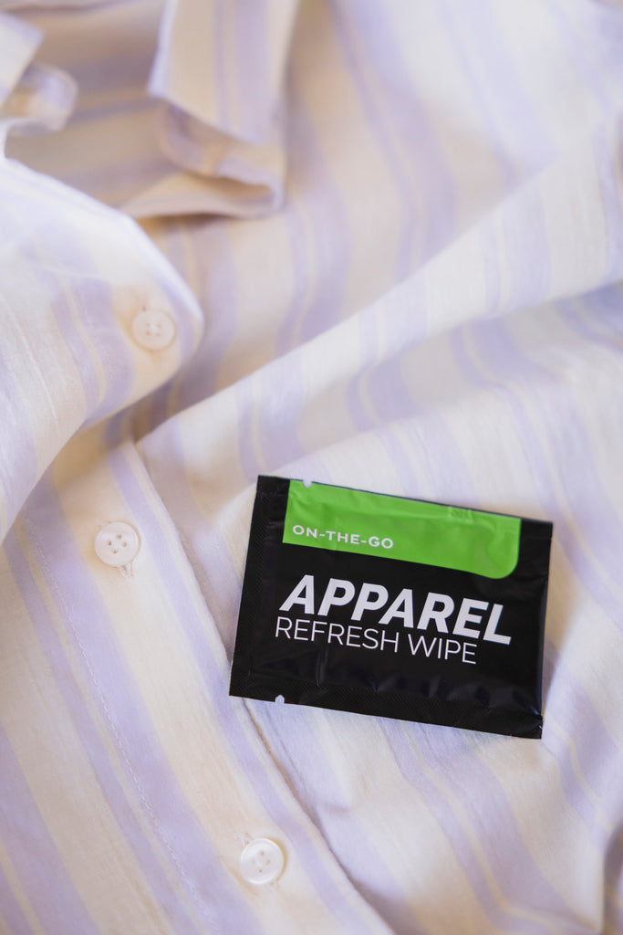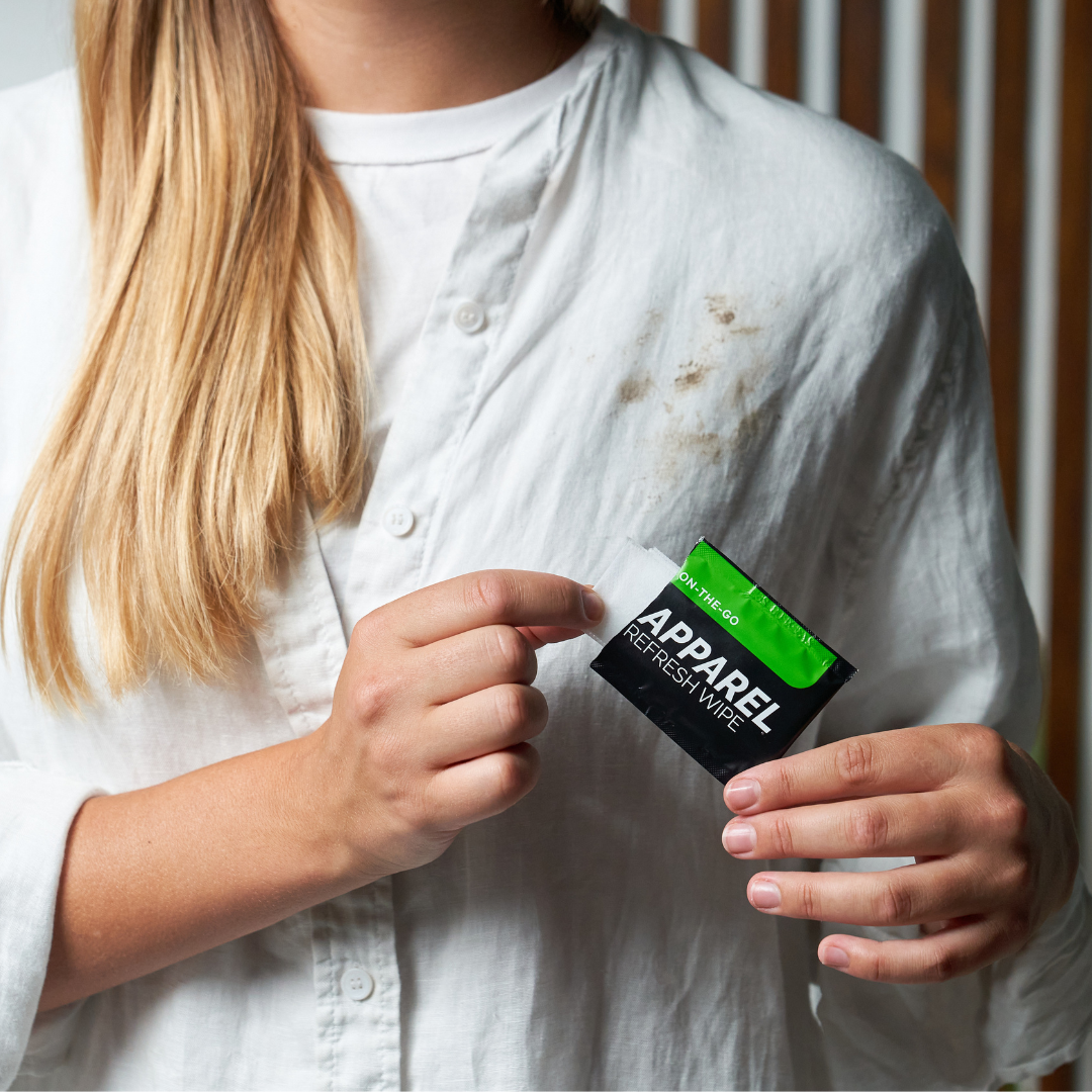 Our convenient, pocket-sized Apparel Refresh Wipes provide a fast and effective solution to cleaning while reducing the amount of water consumption typically used to clean dirt, stains and spills off of garments.